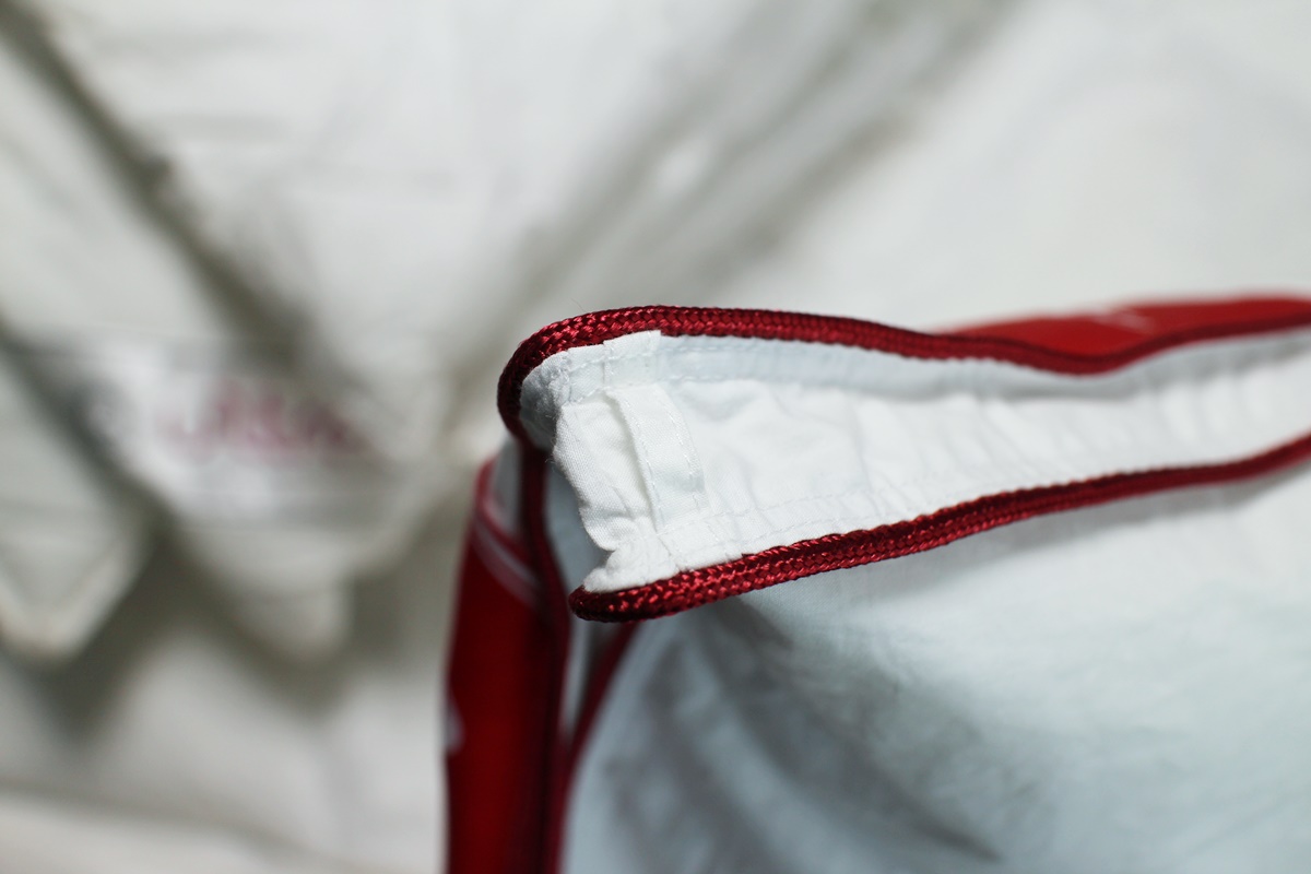 들어있는 구스의 부피가 꽤 되고 이불 끝이 이런 식으로 이중 파이핑으로 되어 있어서,