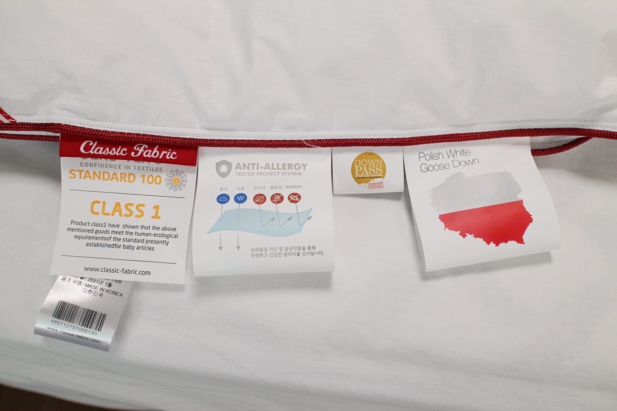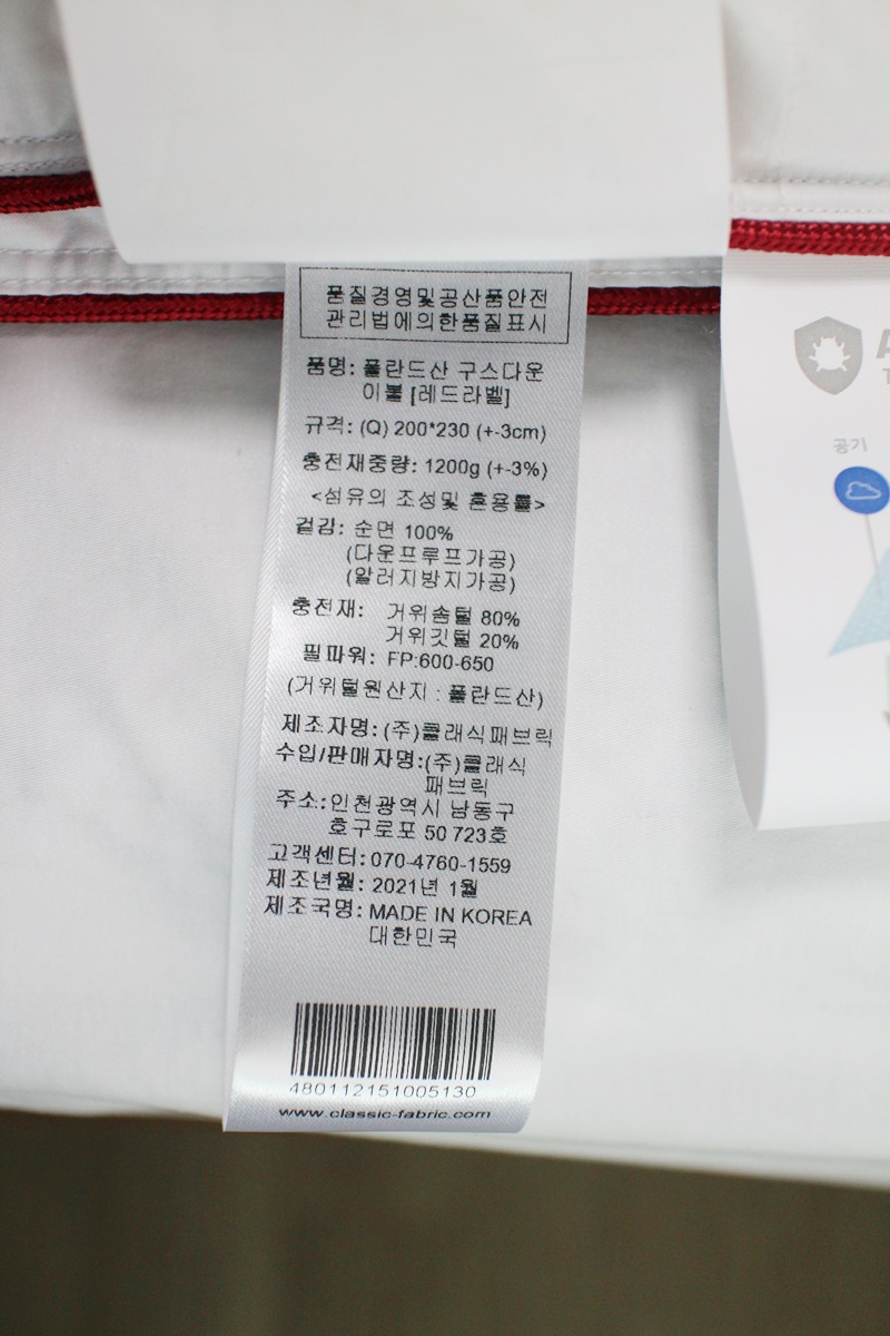 뭐 이것저것 많이 붙어있다. 폴란드 구스다운이라고 함.