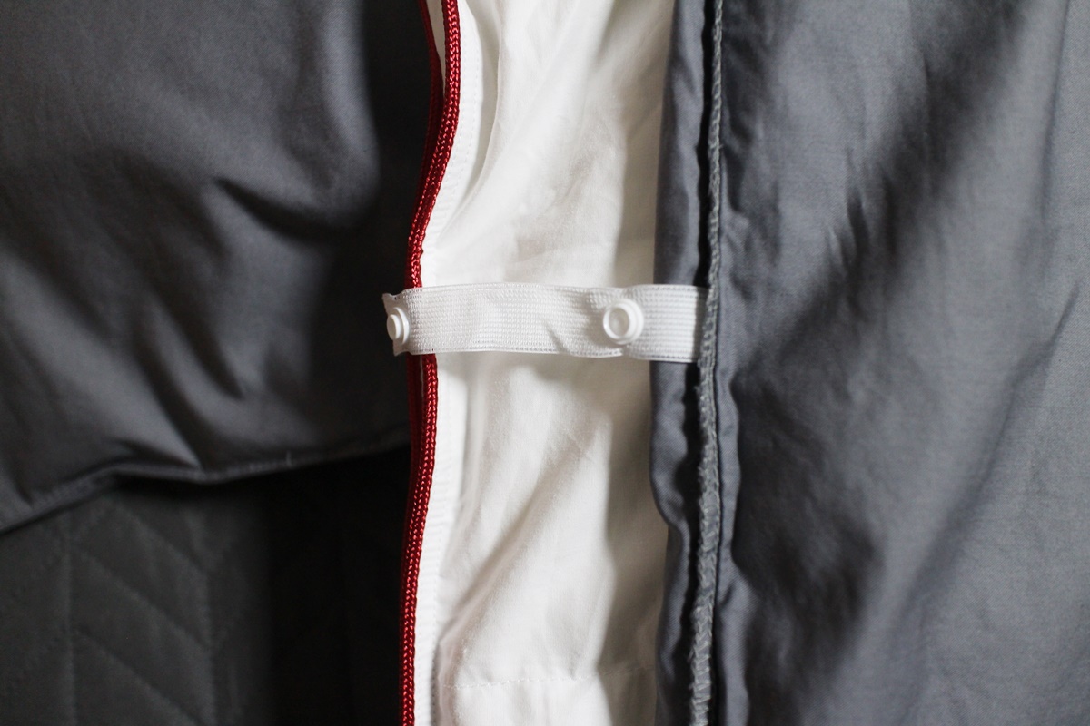 근데 집에 있는 커버에 비해 이건 연결끈 폭이 좀 넓어서 내부의 구스다운이불의 고리에 통과시키는게 좀 어려웠다.