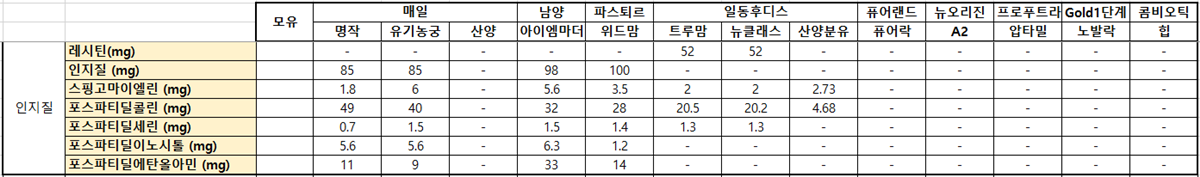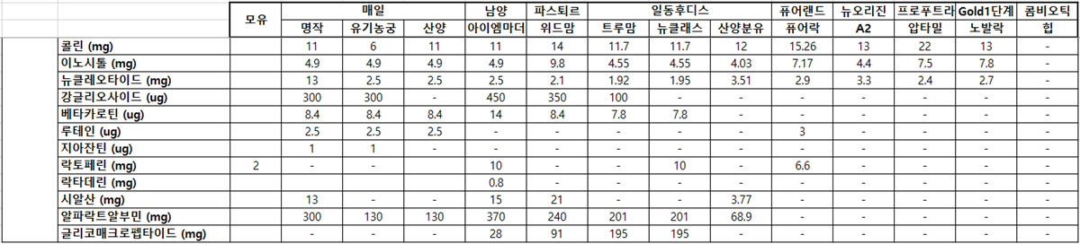 해외 분유들도 콜린과 이노시톨은 대부분 다 적어준다.