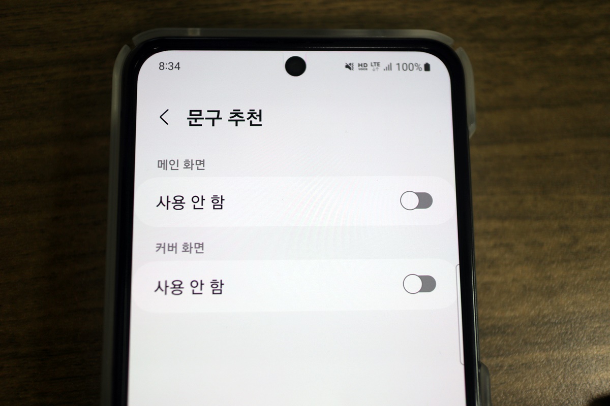 문구 추천과 키보드 툴바를 사용 안함으로 설정하면