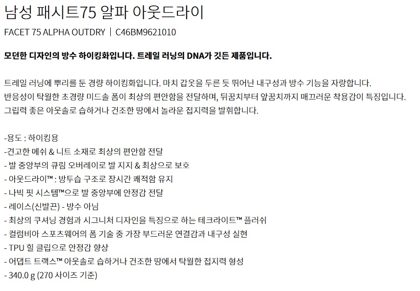 그러던 중에 컬럼비아의 패시트75 알파 아웃드라이가 좀 저렴하게 팔길래 냉큼 구매