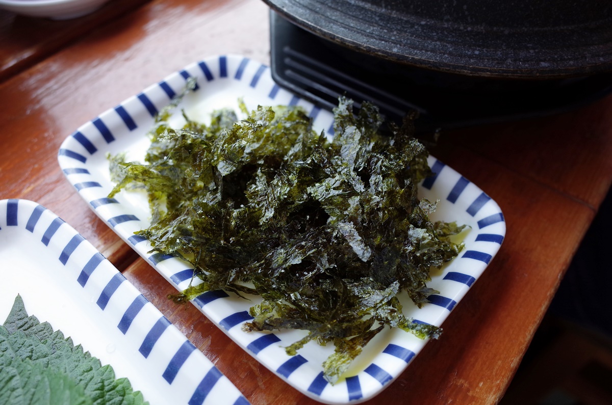 밑반찬이라고 해봐야 새우장 조금과 오징어젓갈 뿐이라서...