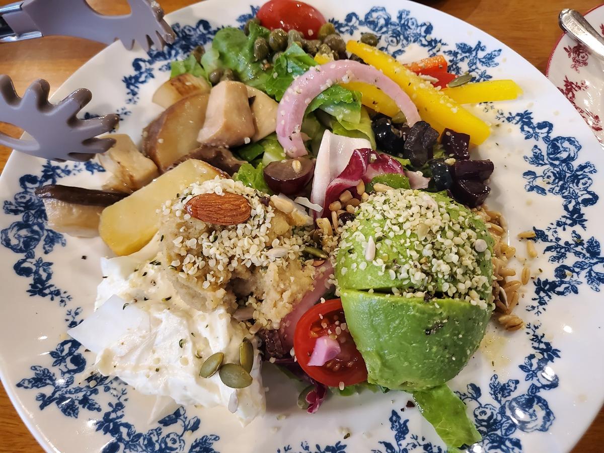 아보카도, 후무스 등을 비롯한 다양한 샐러드류가 들어 있다.