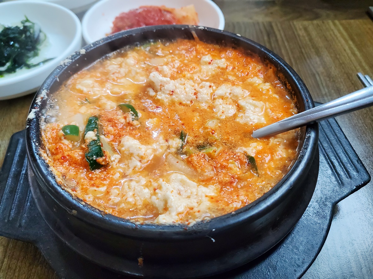 순두부를 주문했는데, 밑반찬이 꽤 잘 깔린다.