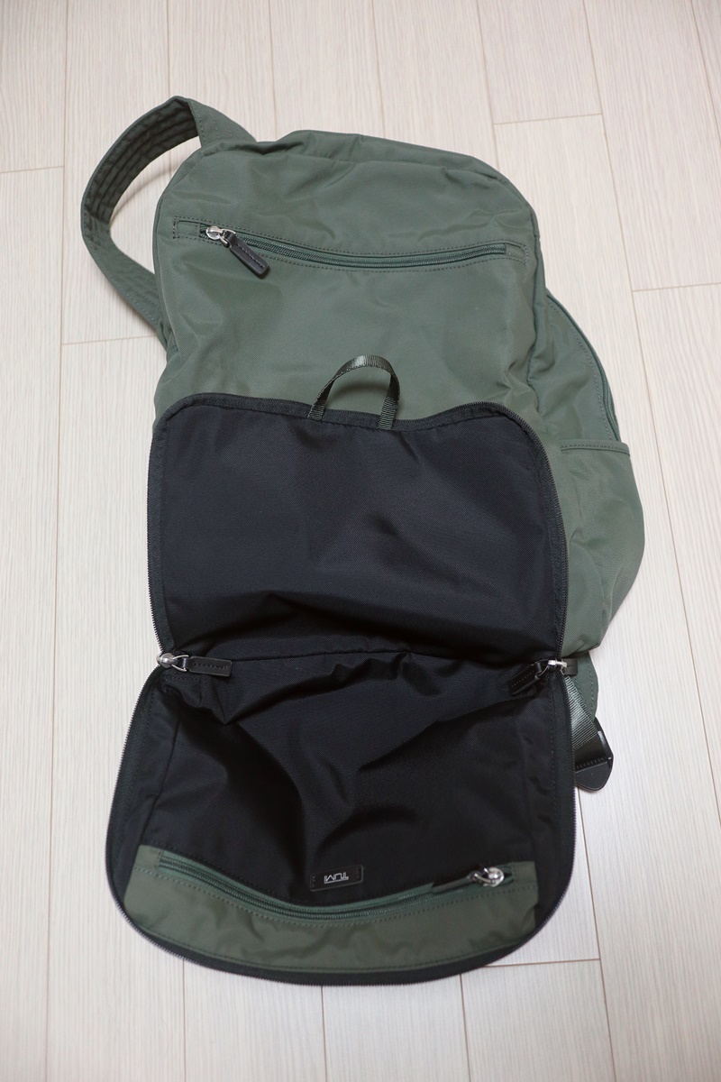 아무래도 접이식인지라, 투미의 일반 백팩처럼 아무것도 안넣더라도 모양이 잡히지는 않는다.